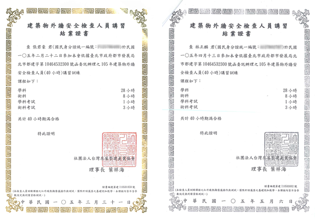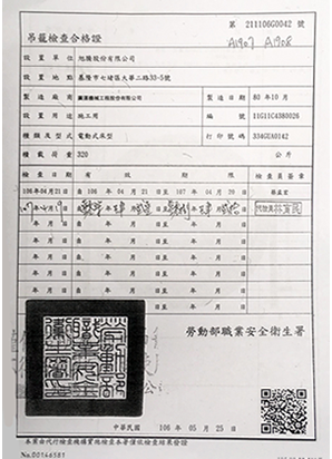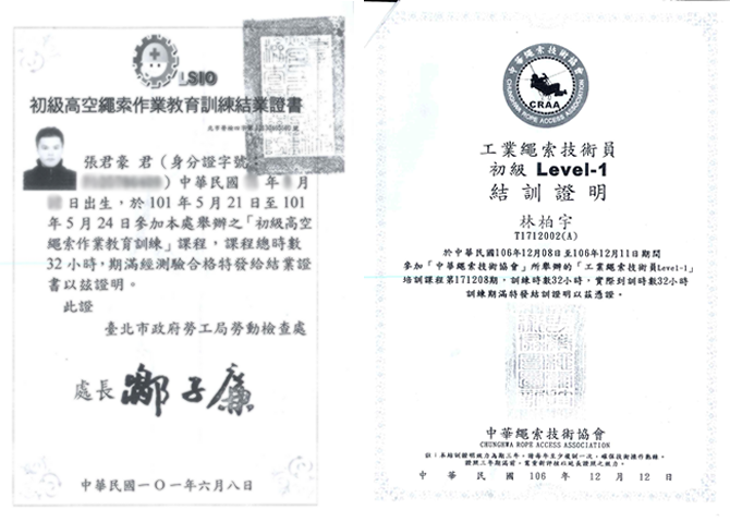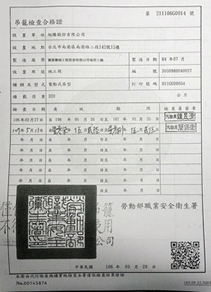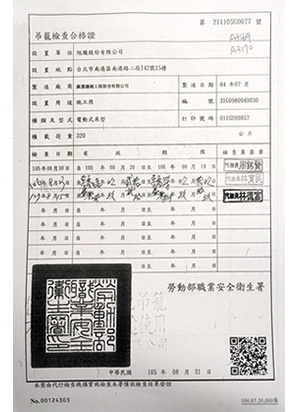 吊籠檢查合格證、人員證照
